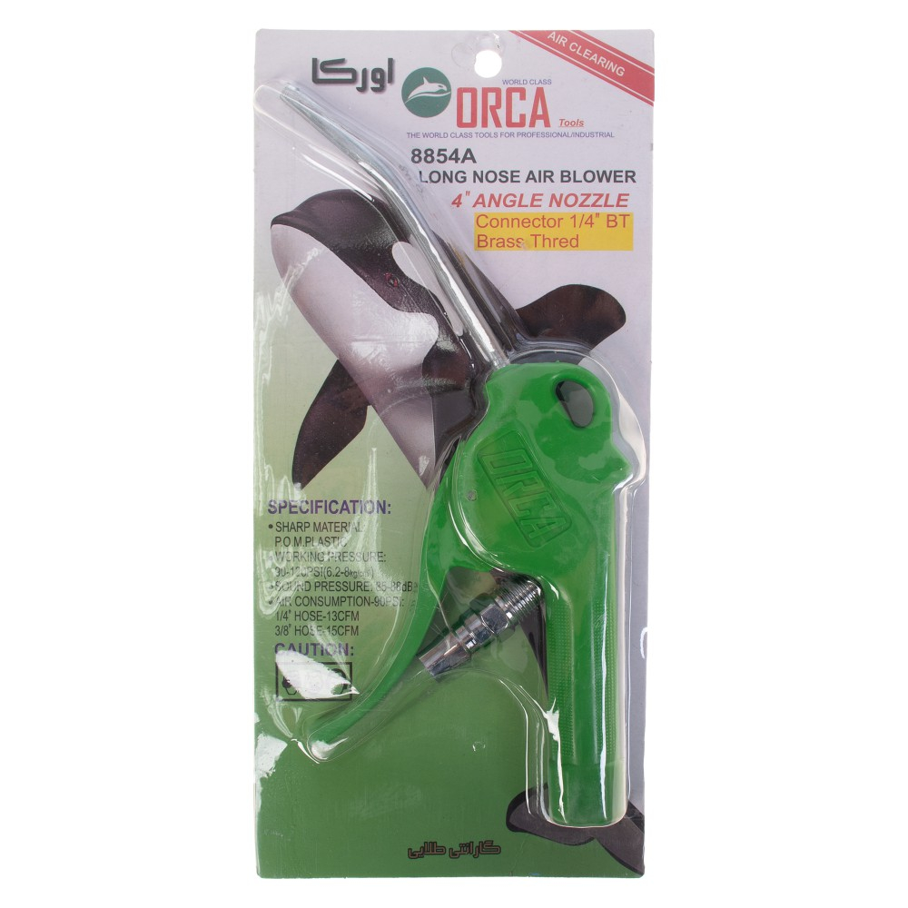 بادپاش اورکا که برای تمیز کردن و شستوشو با هوا و خشک کردن اجسام مختلف کاربرد دارد، از جنس پلاستیک P O M با کیفیت و بادوام ساخته شده است و دارای یک نازل 4 اینچی فلزی است.ابعاد این تفنگ بادپاش برابر با 23× 10 × 2 سانتیمتر و وزن آن برابر با 100 گرم است و در یک بسته بندی 160 گرمی با ابعاد 25.5 × 12 × 2.5 سانتیمتر عرضه شده است.محدودهی فشار کاری این بادپاش از 90PSI تا 120PSI یا 6.2 تا 8 کیلوگرم بر سانتیمتر مربع است و شدت صوتی که ایجاد میکند مابین 85 تا 88 دسی بل میباشد. به همراه این بادپاش، یک عدد کوپلینگ 1/4 اینچ فلزی عرضه شده است.