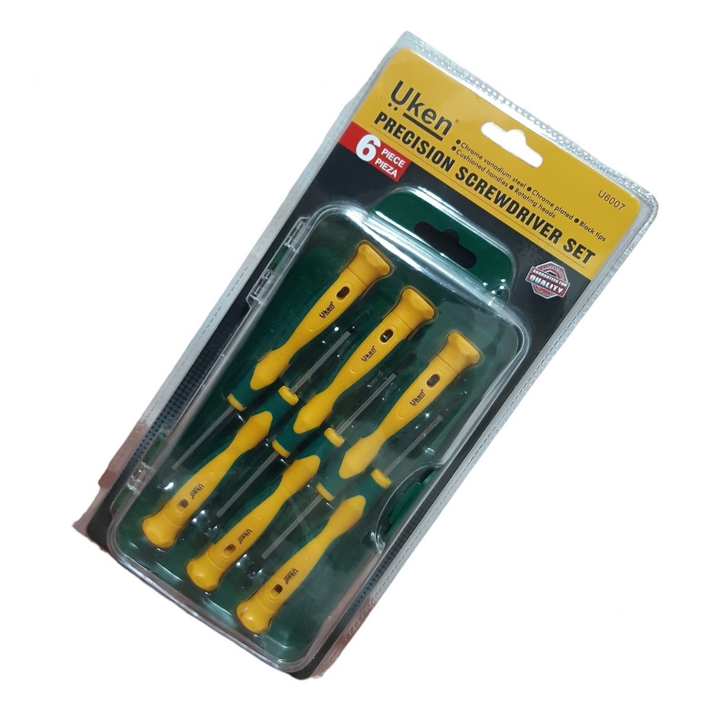 - سایر توضیحاتاین مجموعه از 6 عدد پیچ گوشتی موبایلی درجه یک تشکیل شده است.این ست پیچ گوشتی موبایلی ساخت یوکن تایوان بوده و از درجه کیفی خوبی برخوردار است.این ست پیچ گوشتی از 2عدد دوسو 2.5در50 میلیمتر ، 3در50 میلیمتر و چهارسو PH00در50میلیمتر، PHOدر50 میلیمتر ، ستاره ای T5در50 میلیمتر و T6در50 میلیمتر تشکیل شده است. انتهای این پیچ گوشتی قابل چرخش بوده و مانع اسیب به دست میشود.